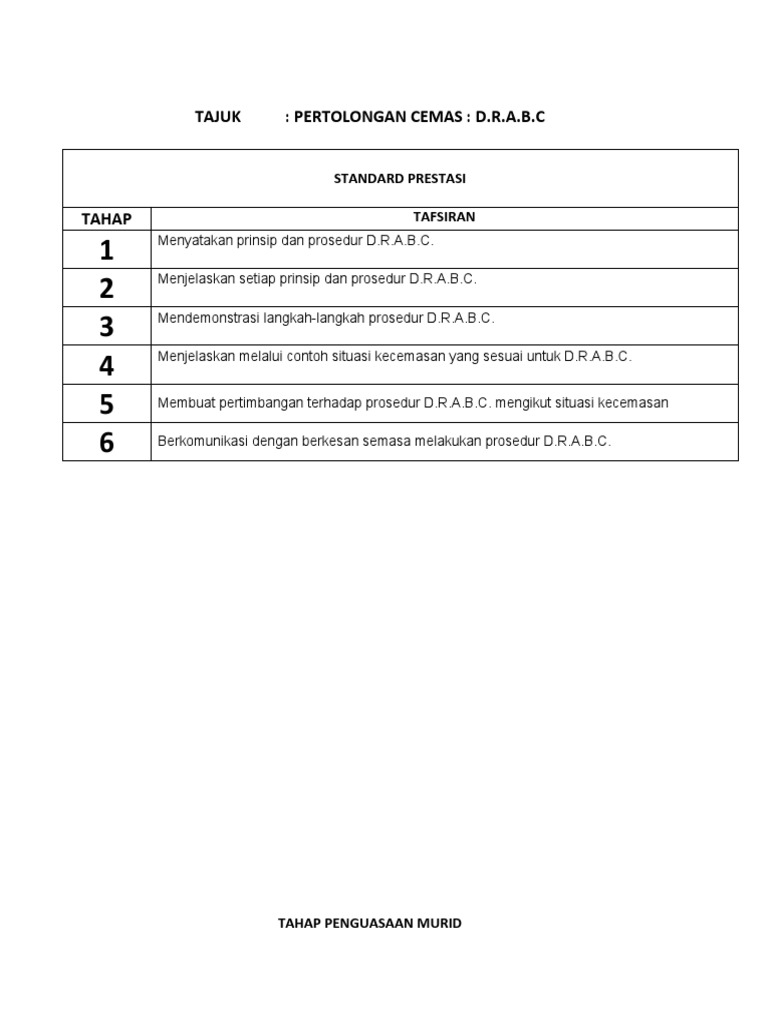 This preview shows page 125 - 130 out of 136 pages. Subjek topik kursus dan situasi belajar. Menjelaskan Melalui Contoh Situasi Kecemasan Yang Sesuai Untuk Drabc.